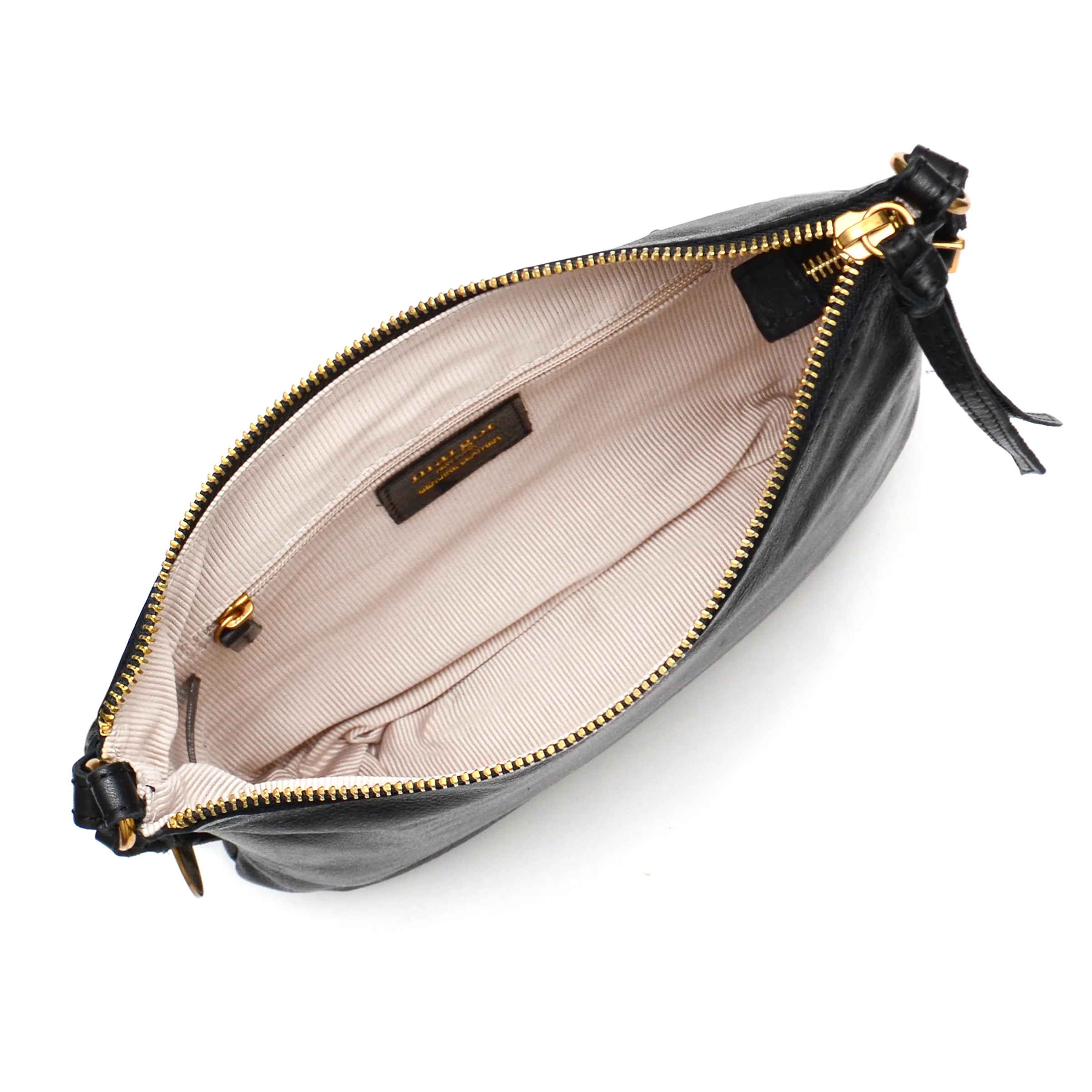 - Interior: One inner zip pocket and one inner slip pocket